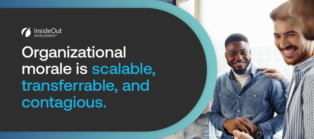 Investing in organizational coaching in and of itself shows that you consider the time and talent of your people precious. They feel valued and supported because they are. And you’re positioning yourself for growth. Organizational morale is scalable, transferrable, and contagious.